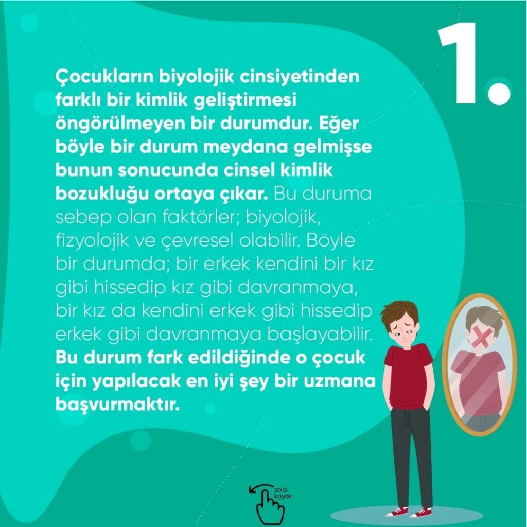 Çocukların biyolojik cinsiyetinden farklı bir kimlik geliştirmesi öngörülmeyen bir durumdur. Eğer böyle bir durum meydana gelmişse bunun sonucunda cinsel kimlik bozukluğu ortaya çıkar. Bu duruma sebep olan faktörler; biyolojik, fizyolojik ve çevresel olabilir. Böyle bir durumda; bir erkek kendini bir kız gibi hissedip kız gibi davranmaya, bir kız da kendini erkek gibi hissedip erkek gibi davranmaya başlayabilir. Bu durum fark edildiğinde o çocuk için yapılacak en iyi şey bir uzmana başvurmaktır.
