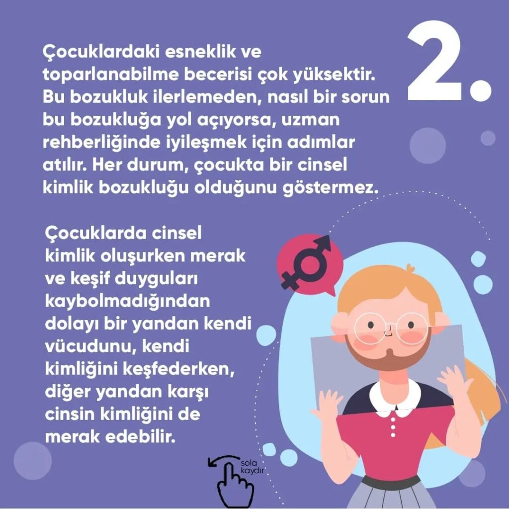 Çocuklardaki esneklik ve toparlanabilme becerisi çok yüksektir. Bu bozukluk ilerlemeden, nasıl bir sorun bu bozukluğa yol açıyorsa, uzman rehberliğinde iyileşmek için adımlar atılır. Her durum, çocukta bir cinsel kimlik bozukluğu olduğunu göstermez.