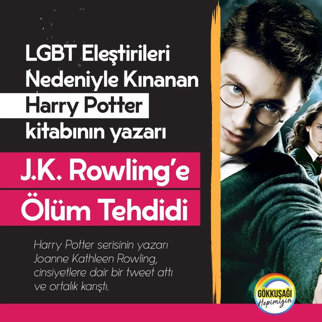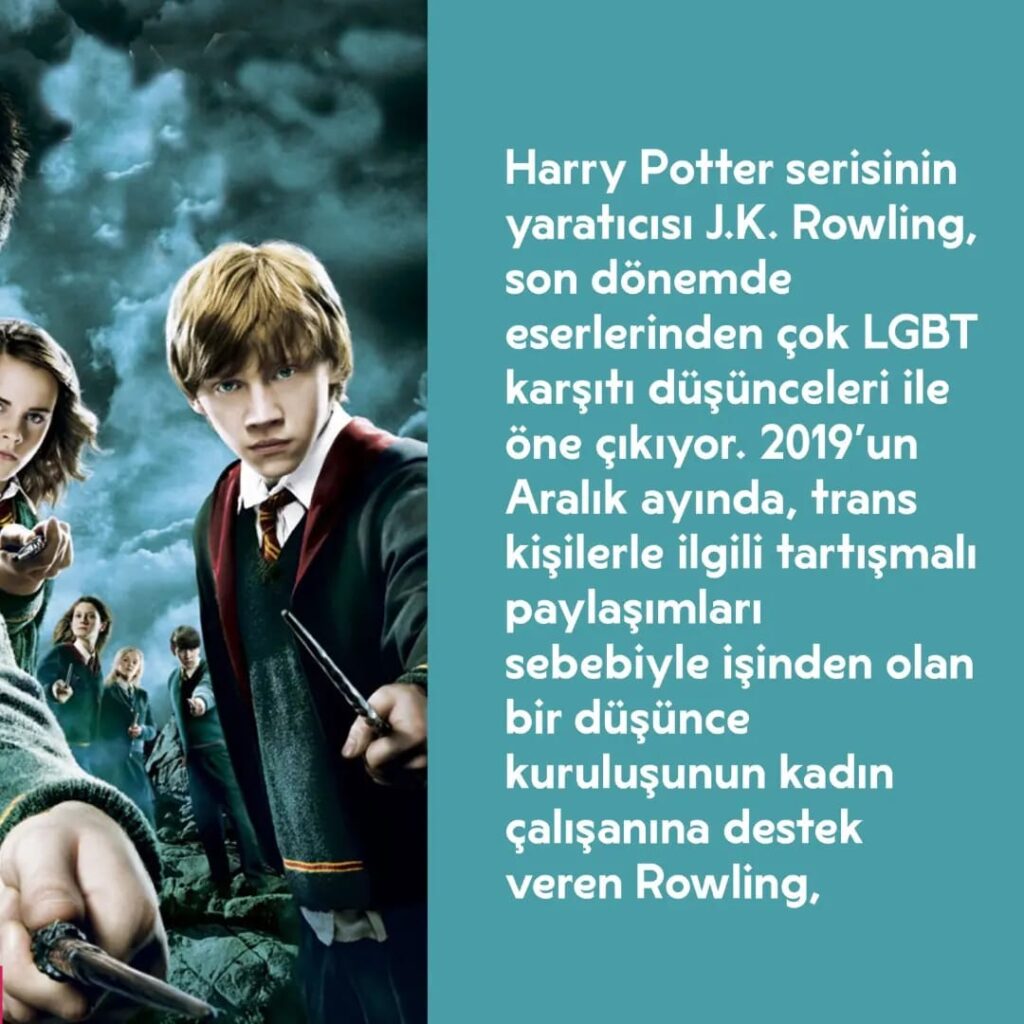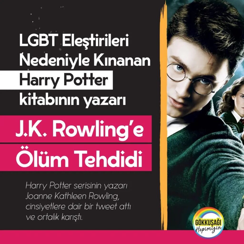 Harry Potter serisinin yaratıcısı J.K. Rowling, son dönemde eserlerinden çok LGBT karşıtı düşünceleri ile öne çıkıyor. 2019’un Aralık ayında, trans kişilerle ilgili tartışmalı paylaşımları sebebiyle işinden olan bir düşünce kuruluşunun kadın çalışanına destek veren Rowling, 2020 Haziran ayında da, regl olan insanlar tabirinin kullanılmasını eleştirerek, “Biyolojik cinsiyet gerçek değilse, küresel olarak kadınların yaşanmış gerçekliği silinir. Transları tanıyor ve seviyorum, ama cinsiyet kavramının silinmesi, pek çok insanın anlamlı şekilde yaşamlarını tartışması kabiliyetini ortadan kaldırıyor” diye sosyal medyadan paylaşımda bulunmuştu.
