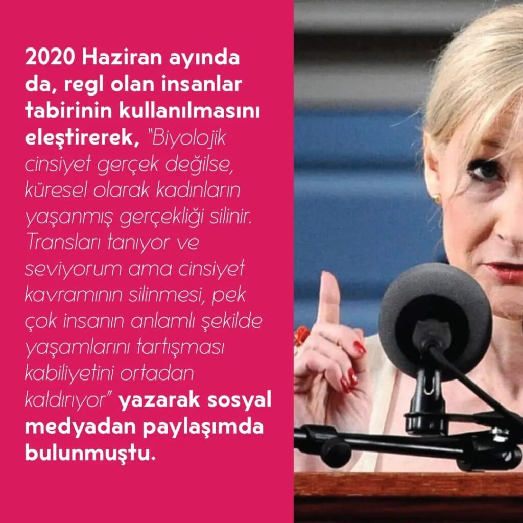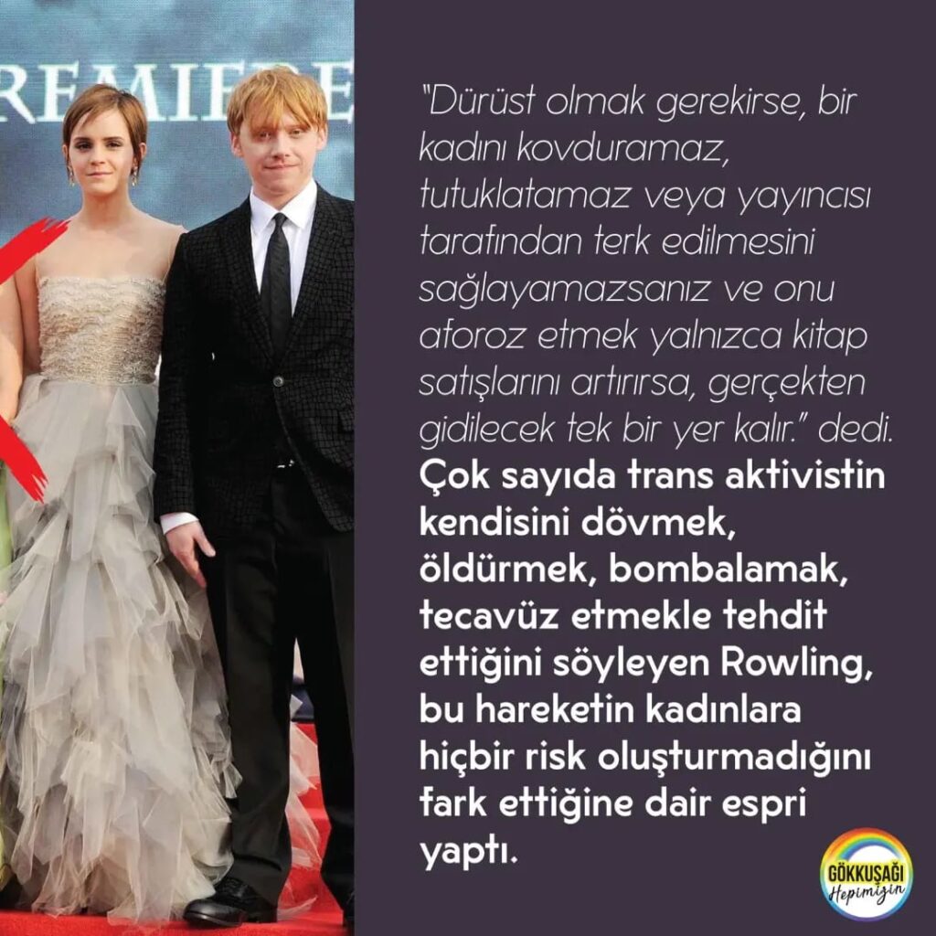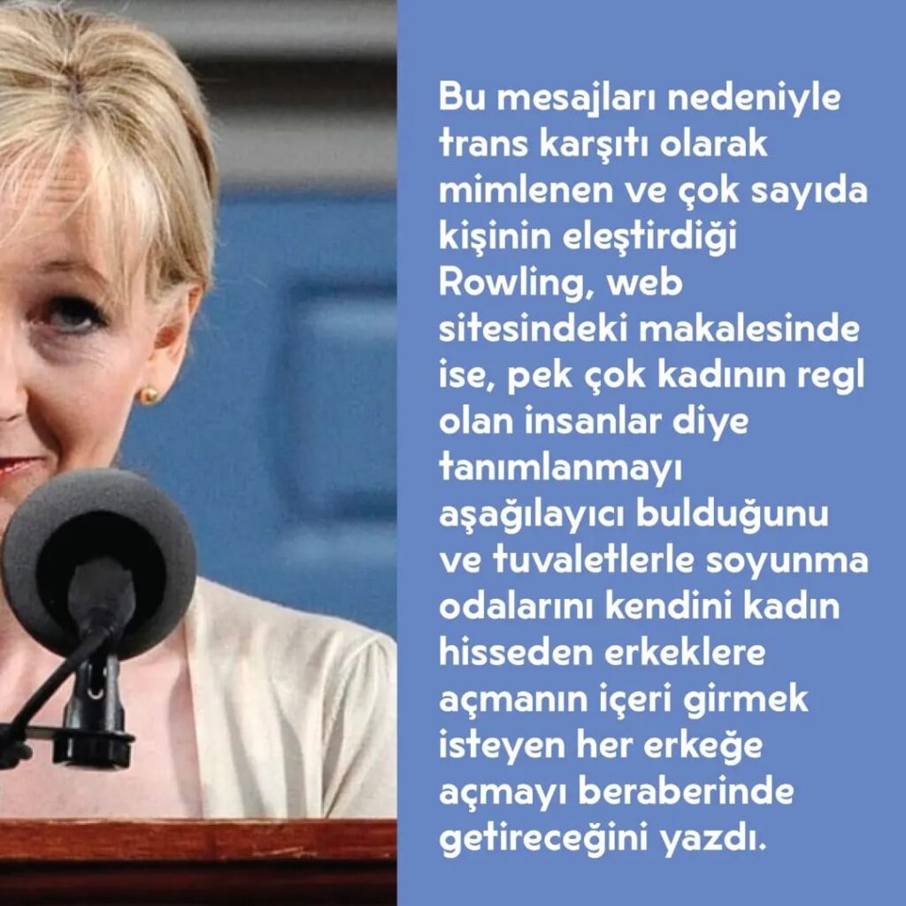 Harry Potter serisinin yaratıcısı J.K. Rowling, son dönemde eserlerinden çok LGBT karşıtı düşünceleri ile öne çıkıyor. 2019’un Aralık ayında, trans kişilerle ilgili tartışmalı paylaşımları sebebiyle işinden olan bir düşünce kuruluşunun kadın çalışanına destek veren Rowling, 2020 Haziran ayında da, regl olan insanlar tabirinin kullanılmasını eleştirerek, “Biyolojik cinsiyet gerçek değilse, küresel olarak kadınların yaşanmış gerçekliği silinir. Transları tanıyor ve seviyorum, ama cinsiyet kavramının silinmesi, pek çok insanın anlamlı şekilde yaşamlarını tartışması kabiliyetini ortadan kaldırıyor” diye sosyal medyadan paylaşımda bulunmuştu.