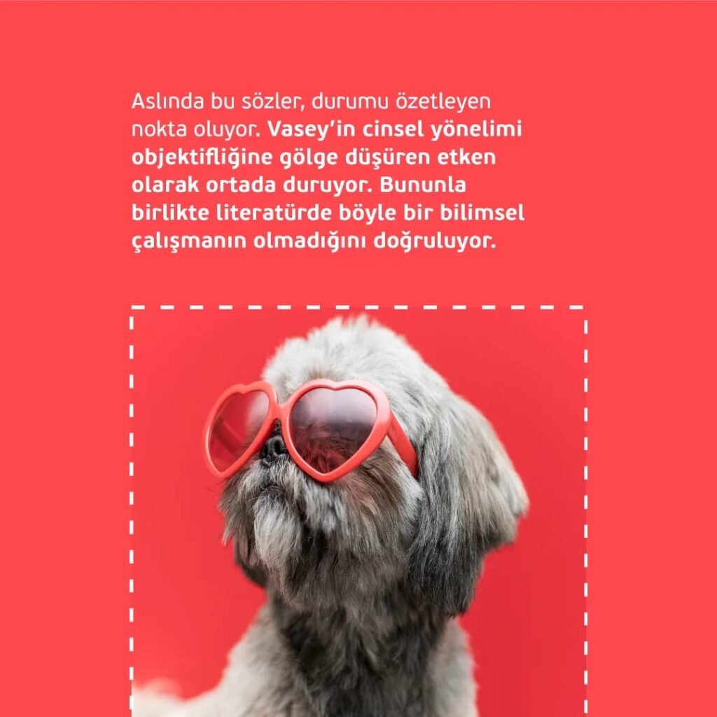 Aslında bu sözler, durumu özetleyen nokta oluyor. Vasey’in cinsel yönelimi objektifliğine gölge düşüren etken olarak ortada duruyor. Bununla birlikte literatürde böyle bir bilimsel çalışmanın olmadığını doğruluyor.