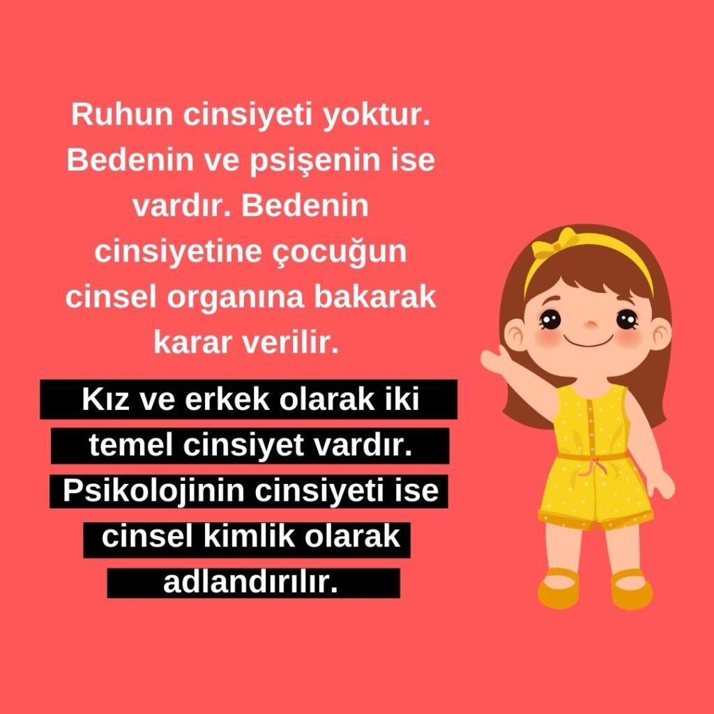 Ruhun cinsiyeti yoktur. Bedenin ve psişenin ise vardır. Bedenin cinsiyetine çocuğun cinsel organına bakarak karar verilir. Kız ve erkek olarak iki temel cinsiyet vardır. Psikolojinin cinsiyeti ise cinsel kimlik olarak adlandırılır.