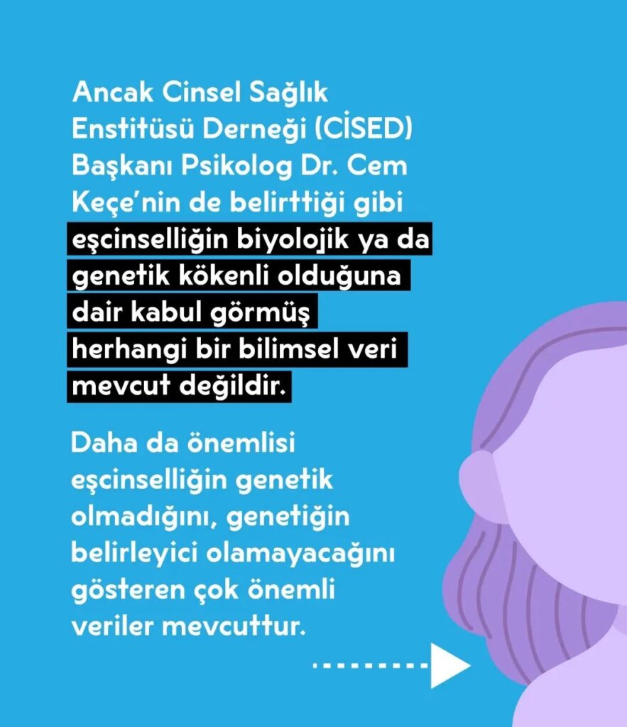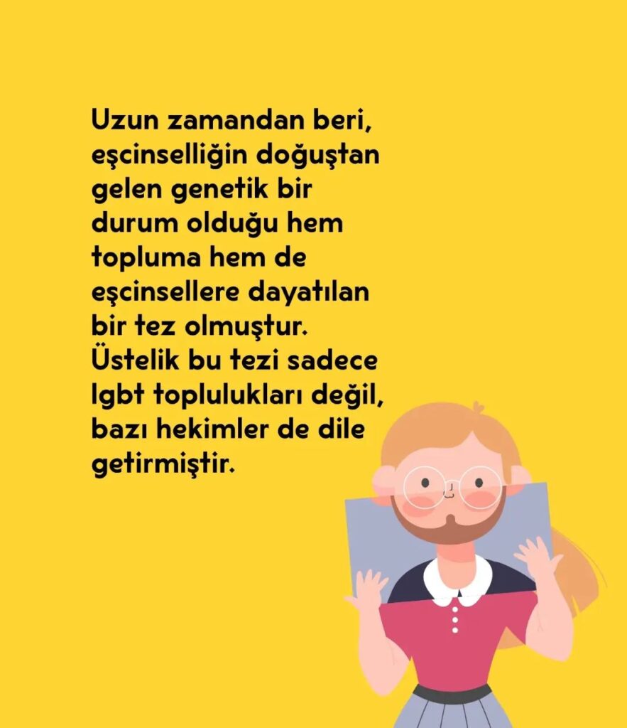 Uzun zamandan beri, eşcinselliğin doğuştan gelen genetik bir durum olduğu hem topluma hem de eşcinsellere dayatılan bir tez olmuştur. Üstelik bu tezi sadece eşcinsel lobisi değil bazı hekimler de dile getirmiştir. Ancak Cinsel Sağlık Enstitüsü Derneği (CİSED) Başkanı Psikolog Dr. Cem Keçe’nin de belirttiği gibi eşcinselliğin biyolojik ya da genetik kökenli olduğuna dair kabul görmüş herhangi bir bilimsel veri mevcut değildir. Daha da önemlisi eşcinselliğin genetik olmadığını, genetiğin belirleyici olamayacağını gösteren çok önemli veriler mevcuttur.
