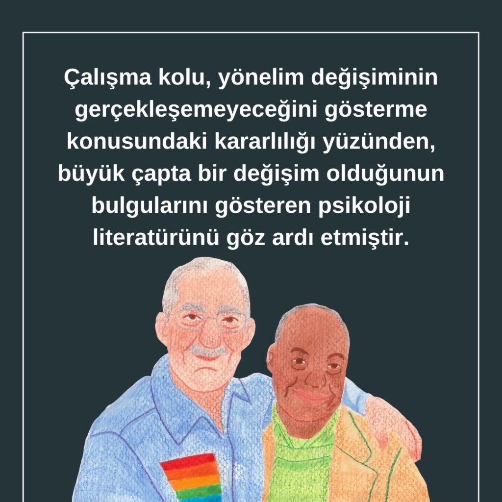 Çalışma Kolu, yönelim değişiminin gerçekleşemeyeceğini gösterme konusundaki kararlılığı yüzünden, büyük çapta bir değişim olduğunun bulgularını gösteren psikoloji literatürünü göz ardı etmiştir.